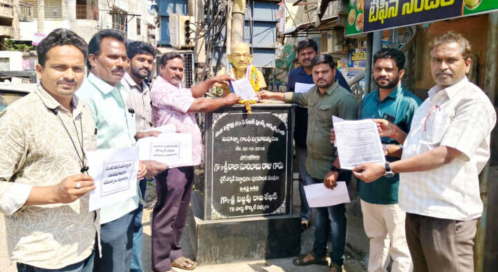 సహకార ఉద్యోగుల సమ్మె..మహాత్మగాంధీకి వినతిపత్రం