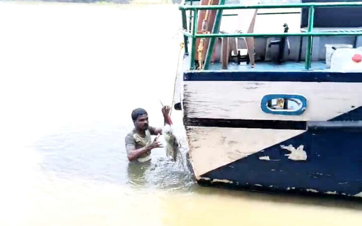 సముద్రం-నది ముఖద్వారం వద్ద చిక్కుకున్న బోటు..తప్పిన పెను ప్రమాదం