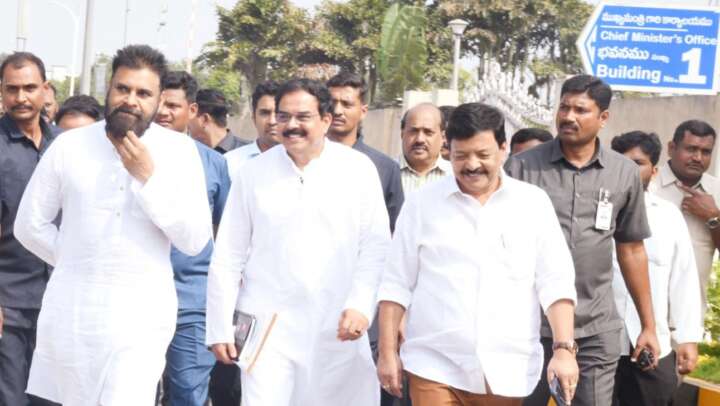 సహచర మంత్రులతో క్యాబినెట్ కి పవన్
