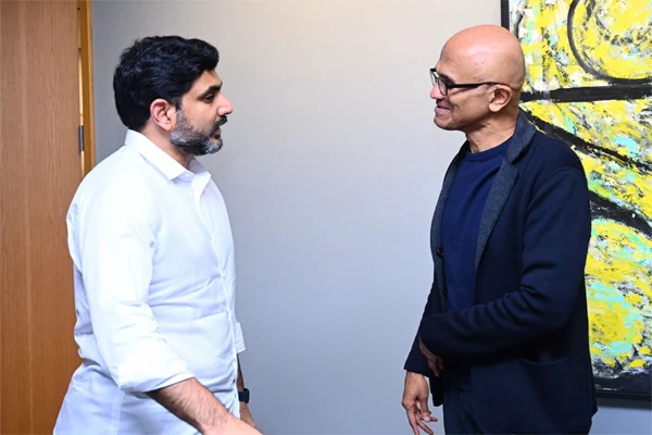 మైక్రోసాఫ్ట్ సీఈఓ సత్యనాదెళ్లతో మంత్రి లోకేష్ భేటీ, పెట్టుబడుల గురించి..