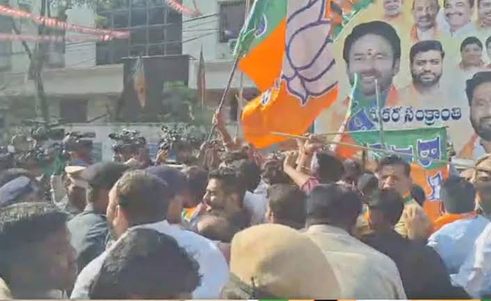 గాంధీభవన్ వద్ద ఉద్రిక్తత.. బీజేపీ శ్రేణులు అరెస్ట్..