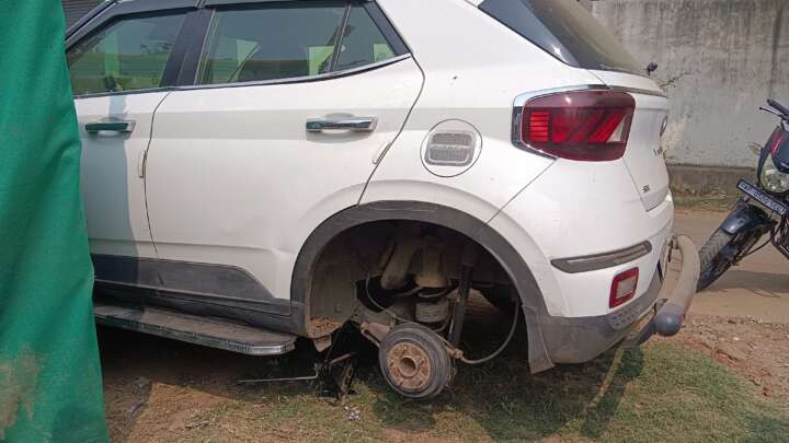 పార్కింగ్ చేసిన కారుచక్రాలు మాయం